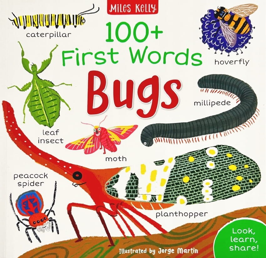 100+ First Words: Bugs to wspaniała książka dla najmłodszych, która rozwija słownictwo i ciekawość świata poprzez zabawę z owadami. Świetna do nauki angielskiego i wspólnego spędzania czasu!