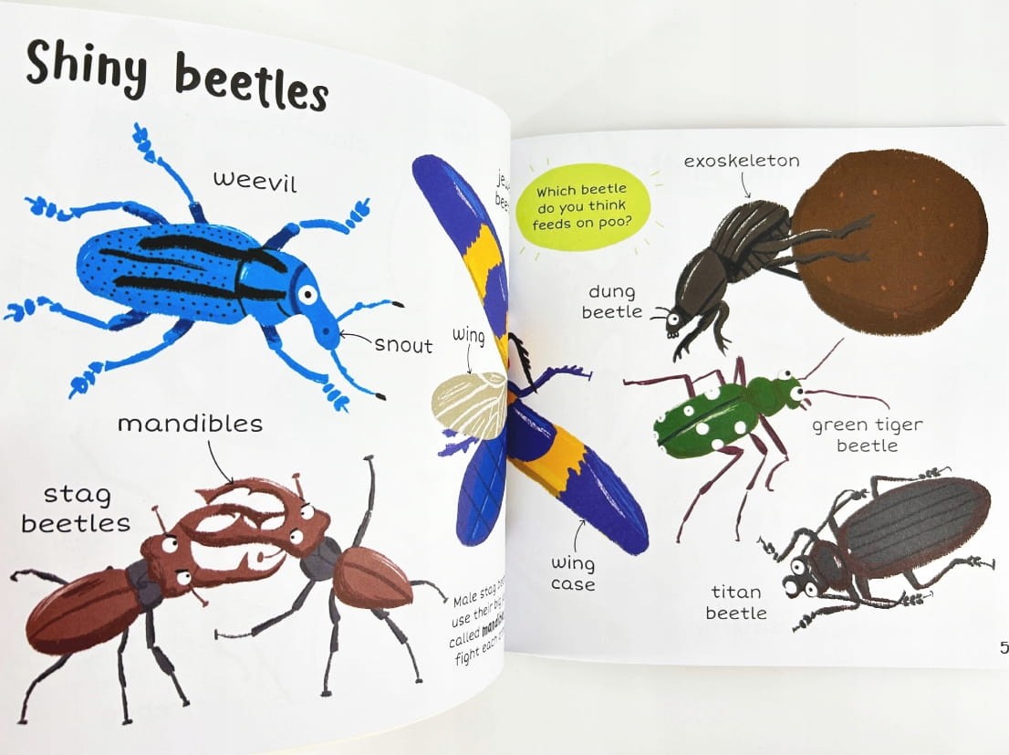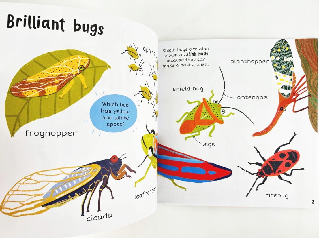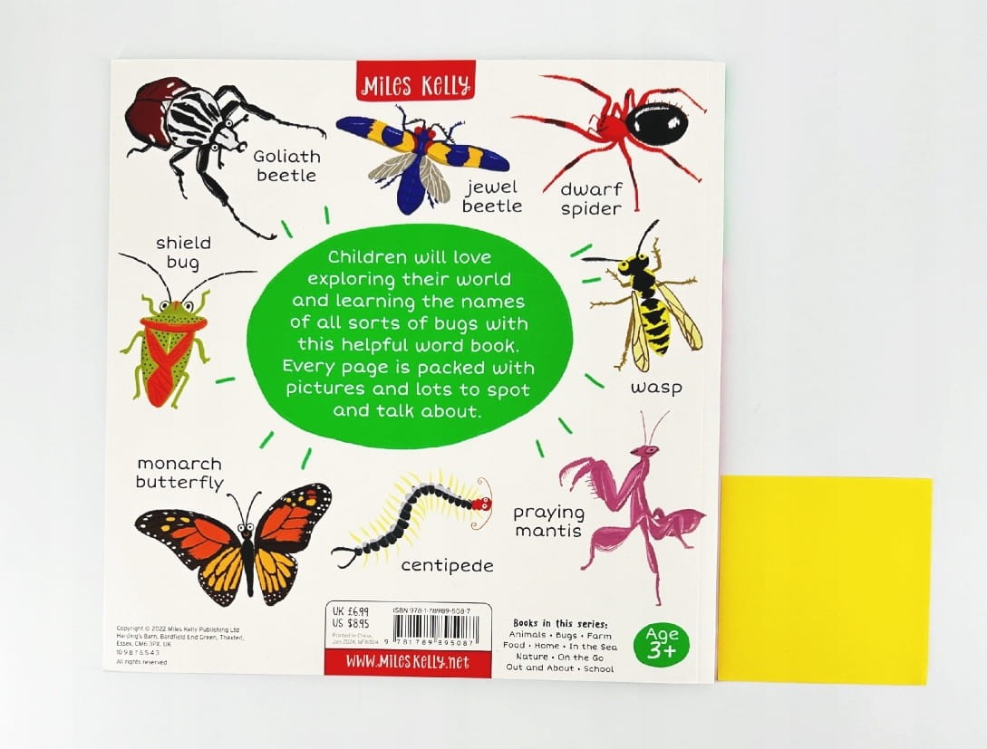 Odkryj świat owadów razem z maluchami dzięki tej wciągającej książce pełnej pierwszych słów o owadach! Każda podwójna strona poświęcona jest innemu tematowi ze świata owadów, takim jak Shiny Beetles czy Wonder Wings, i wypełniona kolorowymi ilustracjami oraz słowami do odkrywania i omawiania.