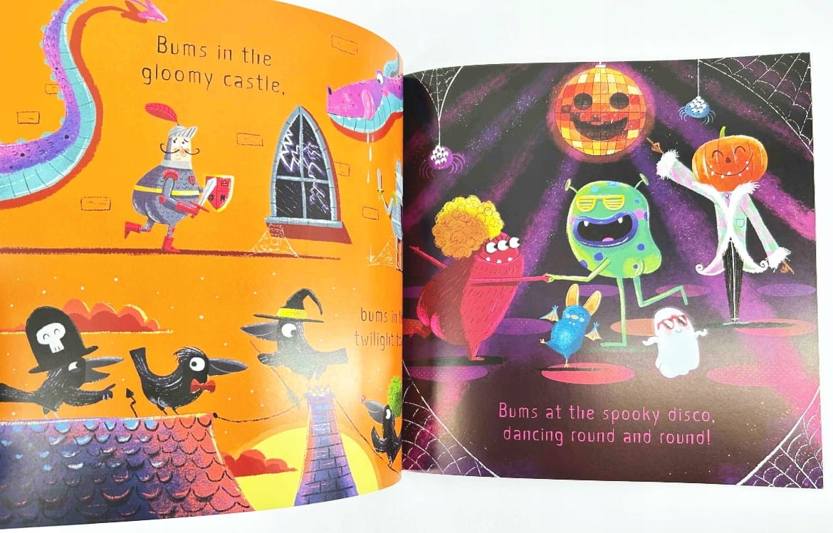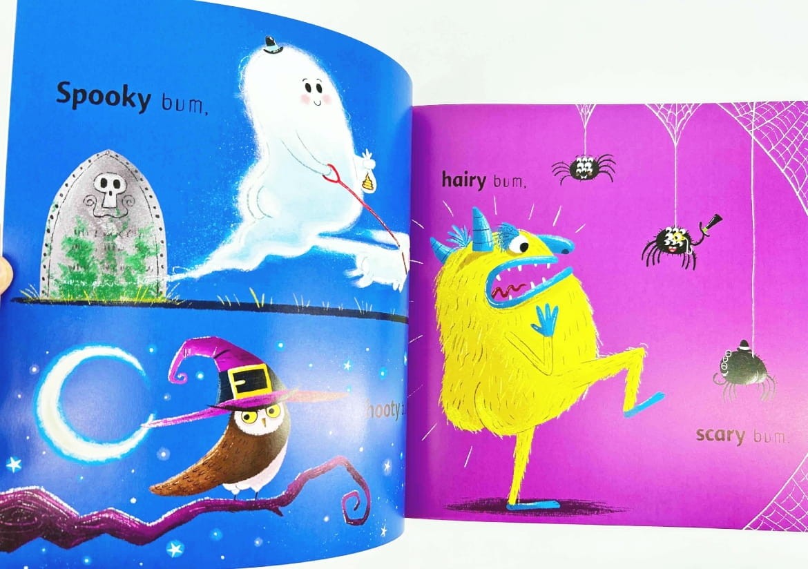 „101 Spooky Bums” to totalnie zwariowana, rymowana książka po angielsku, która rozśmiesza dzieci już od pierwszej strony. Idealna na sezon Halloween: dużo potworków, dużo absurdalnego humoru i mnóstwo „bumów” do wypatrywania na ilustracjach.