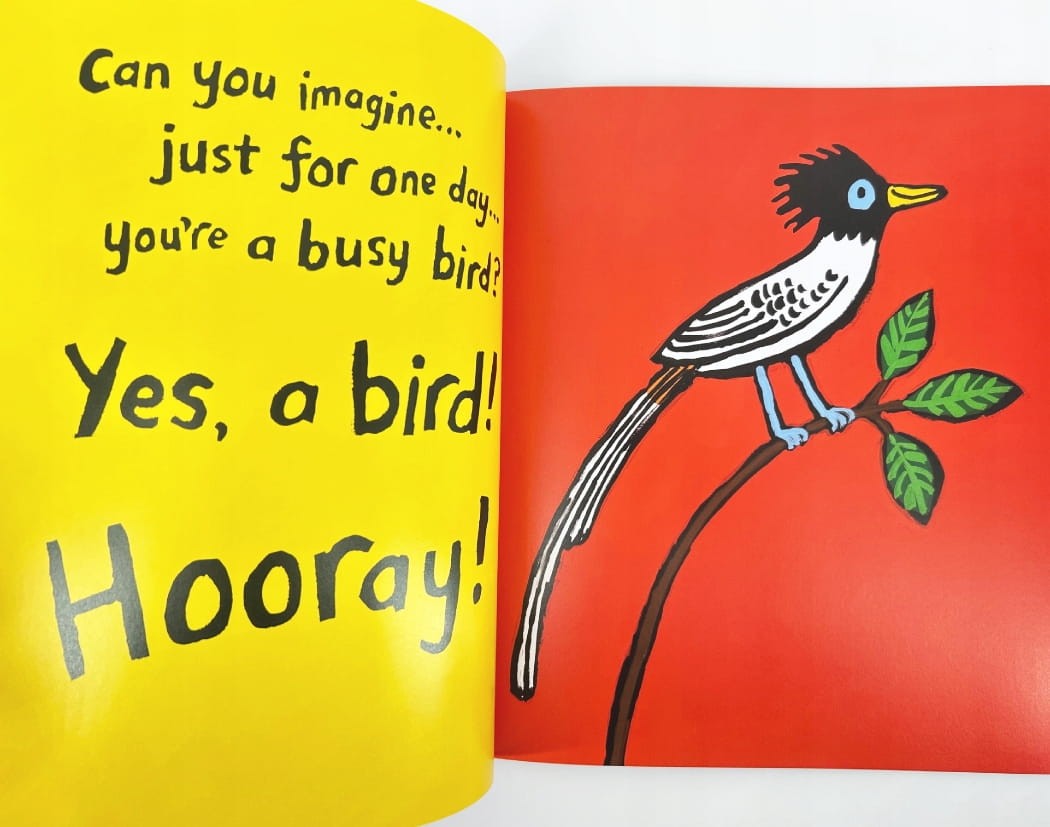 Peck, hop, flap and sing – zakręcony dzień wśród ptaków! Wyobraź sobie, że przez jeden dzień jesteś ptakiem: trzepoczesz skrzydłami, skrzeczysz, śpiewasz i chodzisz na jednej nodze jak flaming.