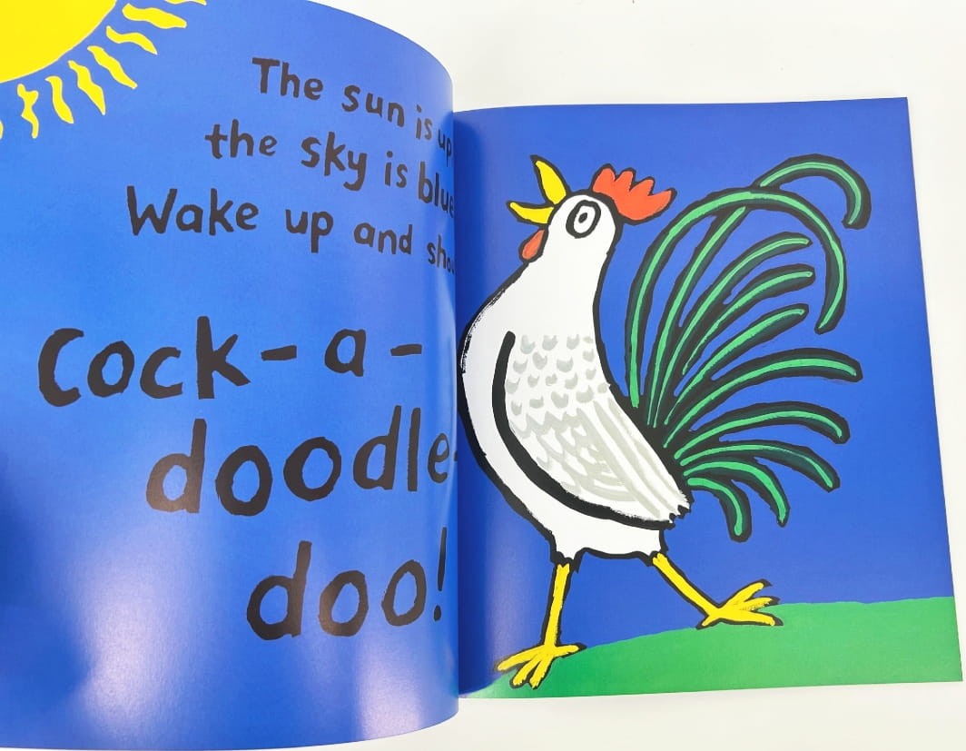 Książka to pełna humoru rymowanka do wspólnego czytania, śpiewania i naśladowania ptasich odgłosów oraz ruchów. Mali czytelnicy spotkają tu całą ferię ptaków: od koguta po sowę i pingwina. Tekst jest rytmiczny i łatwy do zapamiętania, a kolorowe ilustracje w stylu Lucy Cousins przyciągają uwagę dzieci.