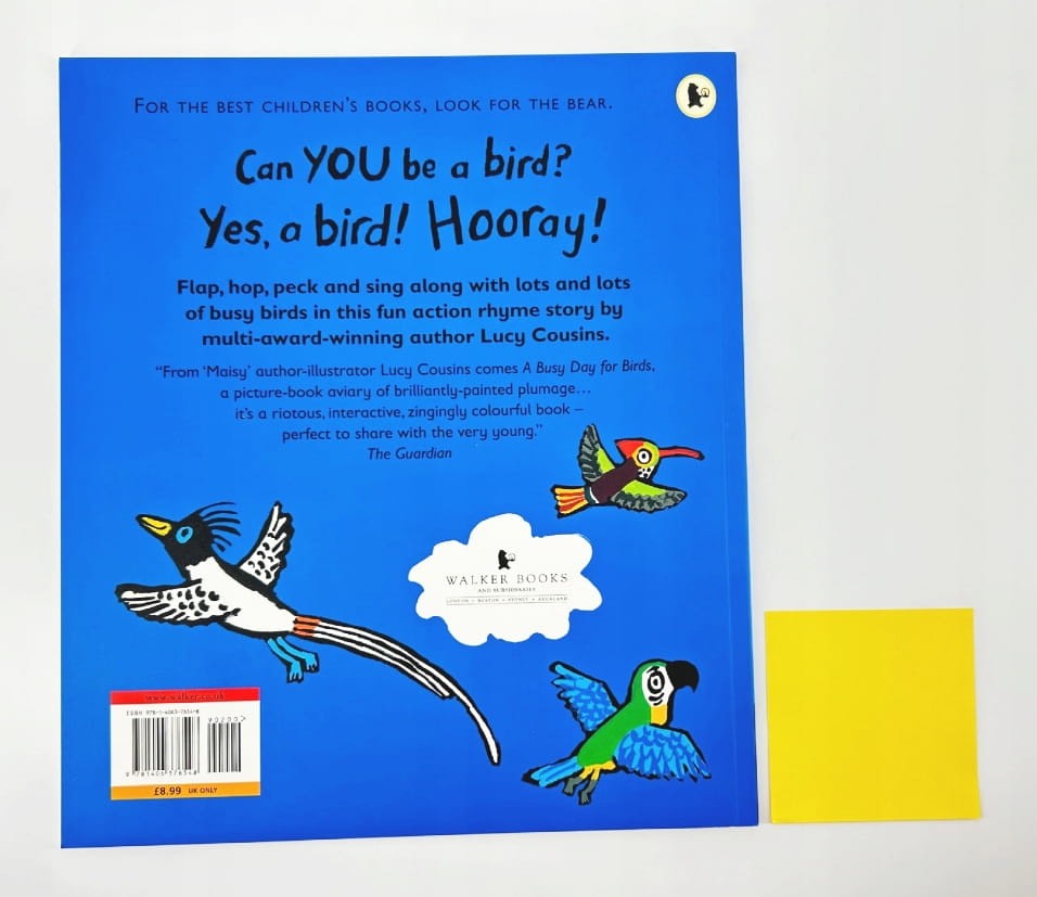 „A Busy Day for Birds” to kolorowa, rymowana książka po angielsku, która zachęca maluchy do ruchu, naśladowania i wspólnej zabawy podczas czytania. Idealna dla dzieci 1–3 lata: tekst jest rytmiczny, pełen prostych poleceń, a ilustracje mają intensywne, wyraziste kolory, które od razu przyciągają uwagę.