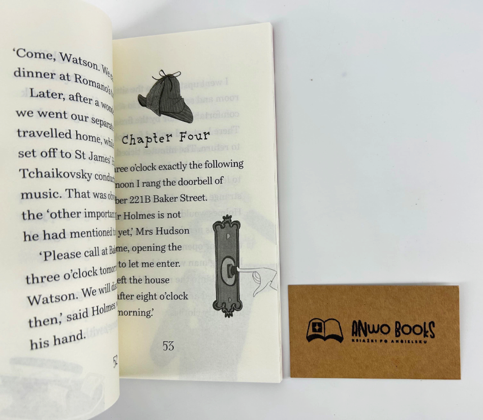 uproszczona historia Sherlocka Holmesa po angielsku, świetna na start z klasyką (7+)