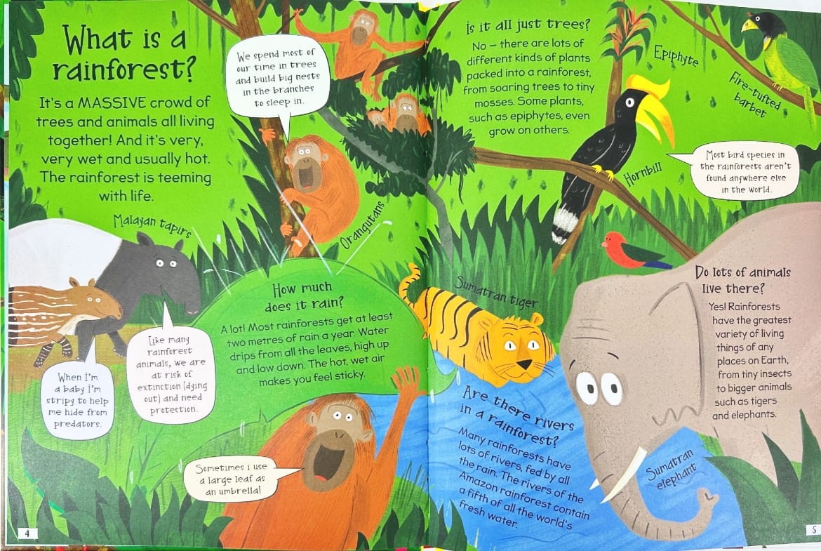 Ta pełna humoru książka w formie pytań i odpowiedzi odkrywa niesamowite fakty o lasach deszczowych i ich mieszkańcach. Znajdziesz tu zabawne ilustracje i ciekawostki, które sprawią, że dzieci będą czytać z zaciekawieniem i śmiechem!