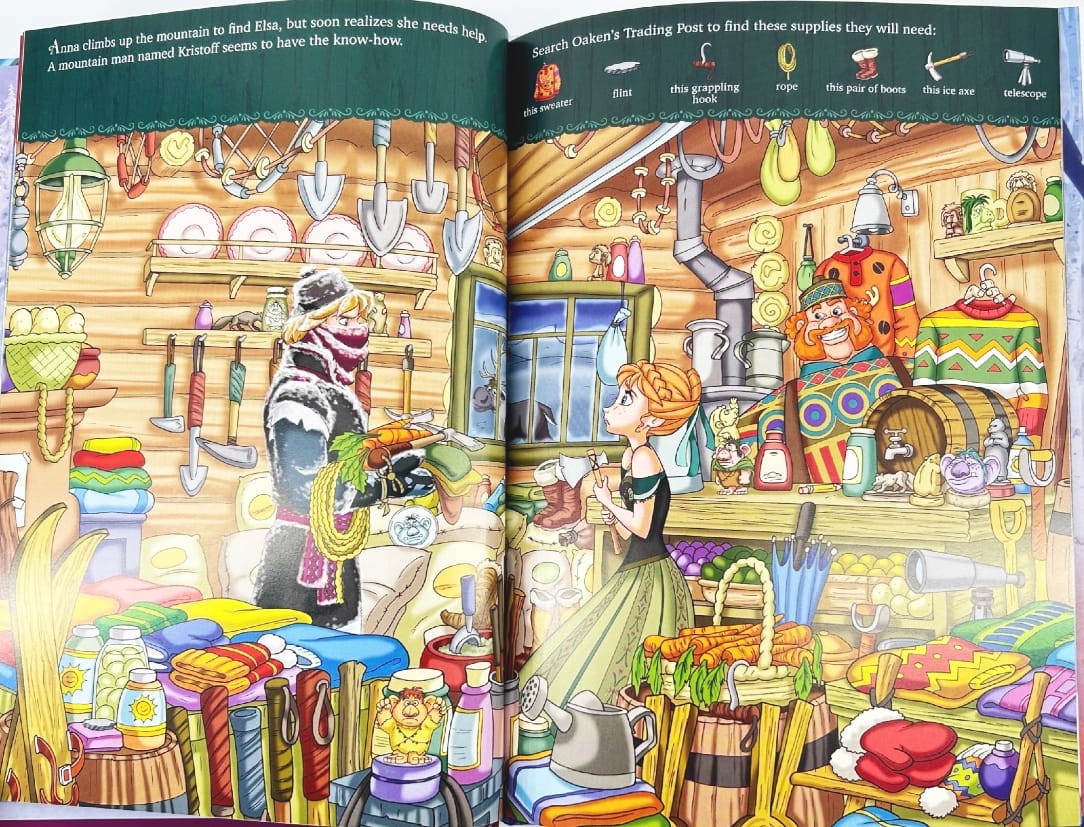 Embark on an epic Frozen adventure with this Look and Find collection including scenes from both movies! Join Elsa, Anna, Olaf, Kristoff, and Sven as you search for hidden objects in 16 frost-covered scenes. Then, sled to the back of the book for more chilly Look and Find challenges!