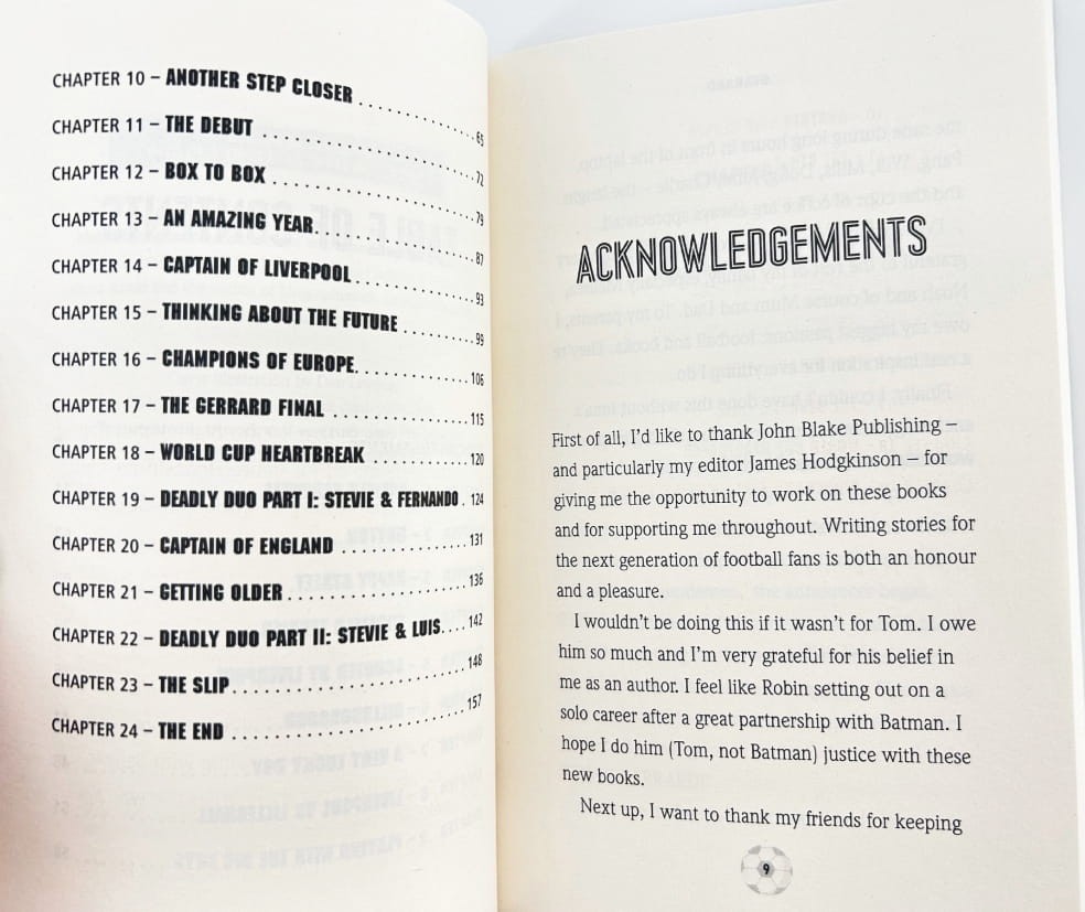 Książka pokazuje drogę Gerrarda od chłopaka z Merseyside, przez juniorską drużynę Whiston Juniors i akademię Liverpoolu (do której trafił w wieku 9 lat), aż po pierwszy profesjonalny kontrakt i ponad dekadę w roli kapitana. W tle są wielkie mecze, trofea i momenty, które znają kibice: legendarny triumf w Lidze Mistrzów oraz sukcesy w FA Cup. Jest też wątek reprezentacji Anglii i występów na mundialu.