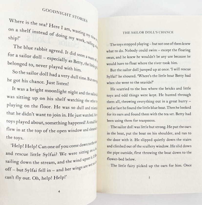„Goodnight Stories” to duży zbiór krótkich opowiadań na dobranoc po angielsku autorstwa Enid Blyton – jednej z najbardziej lubianych autorek dziecięcych w Wielkiej Brytanii. To idealna książka, jeśli szukasz historii, które można czytać rozdział po rozdziale: wieczorem przed snem, w podróży albo jako spokojne czytanie w klasie.