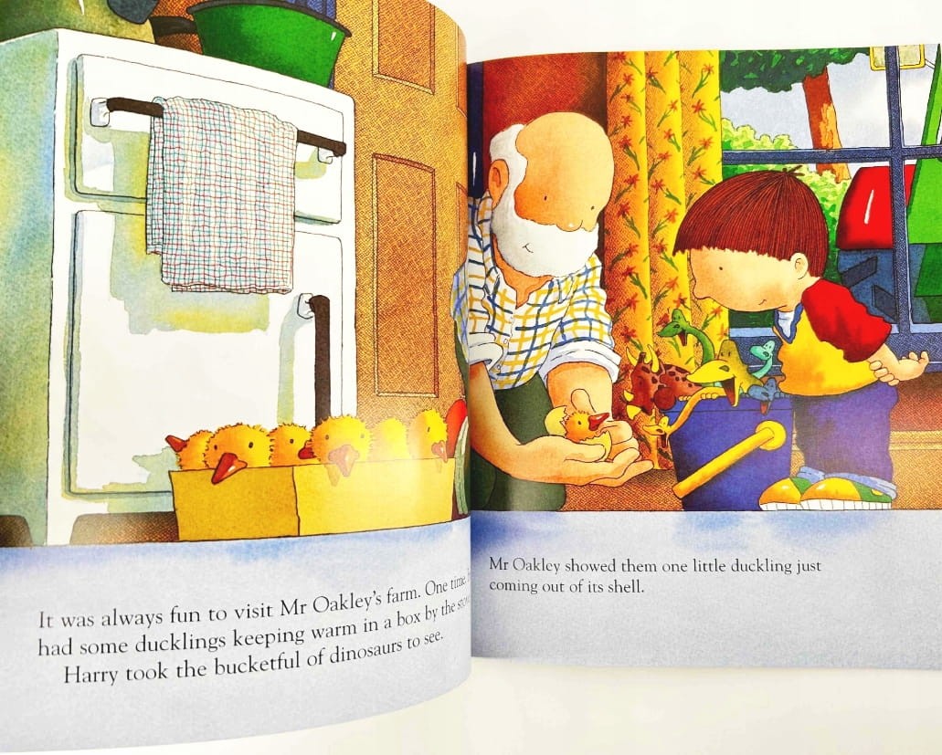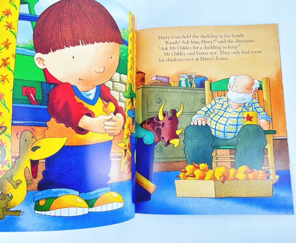 Harry and his bucketful of dinosaurs see some ducklings hatching and wish they could have one of their own. But it's the wrong time for wishing so they wait until Christmas when Harry makes a special list for Santa.