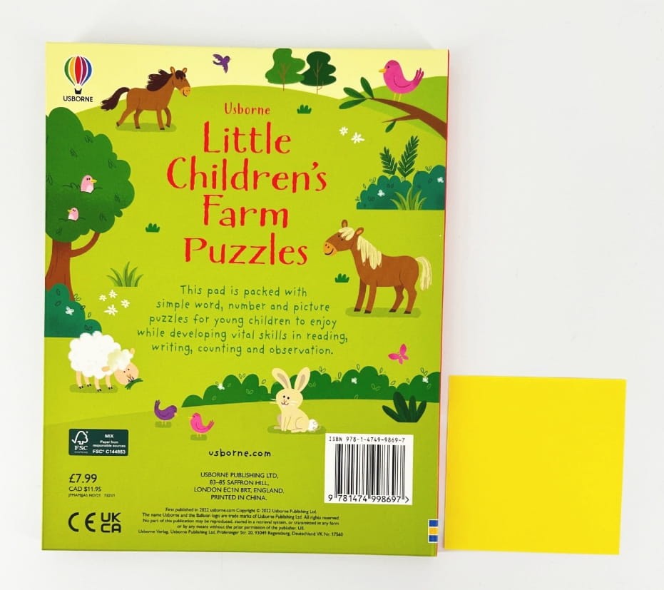 To pełna atrakcji książka z łamigłówkami, która przenosi dzieci na wiejską farmę pełną zwierząt, traktorów i ukrytych niespodzianek. Znajdziesz tu łamigłówki, które rozwijają zdolności logicznego myślenia, koncentrację i spostrzegawczość.