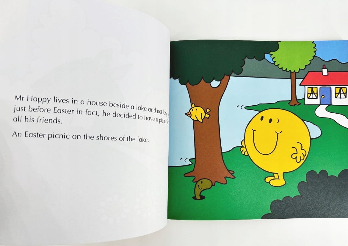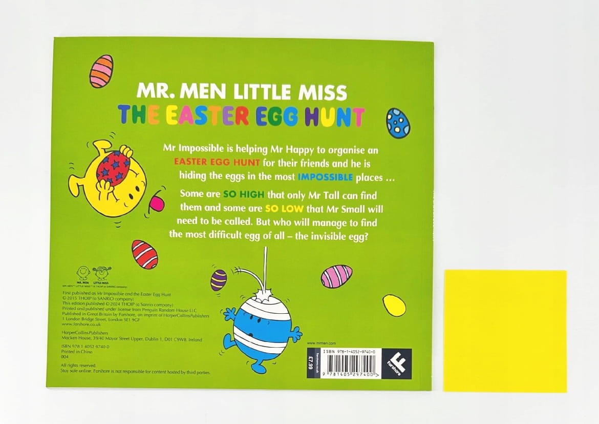 Pan Happy uwielbia poszukiwanie wielkanocnych jajek, ale w tym roku Pan Impossible ukrył je w najbardziej zaskakujących miejscach! Niektóre są tak wysoko, że tylko Pan Tall może je znaleźć, inne tak dobrze schowane, że Pan Small musi się bardzo postarać.