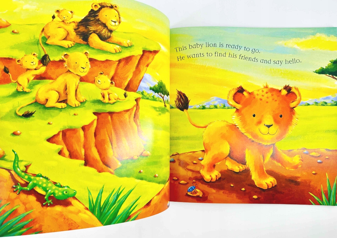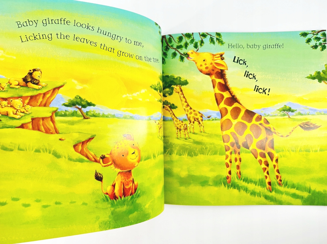 From the hungry baby giraffe to the baby elephant playing in the mud, toddlers will love saying hello to all the animals and joining in with the noises in this fun savannah story.
