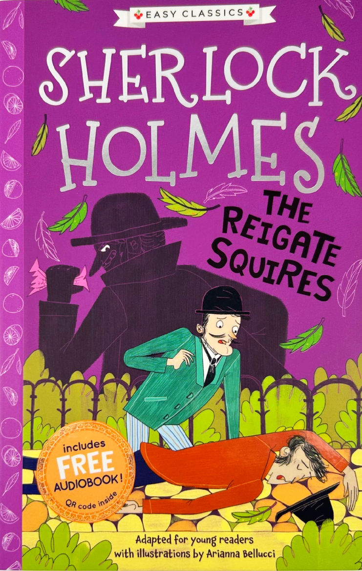 „Sherlock Holmes: The Reigate Squires” to ilustrowana, uproszczona adaptacja klasycznej historii detektywistycznej dla dzieci. To świetna propozycja dla młodych czytelników, którzy lubią zagadki, napięcie i błyskotliwe śledztwa Sherlocka Holmesa.