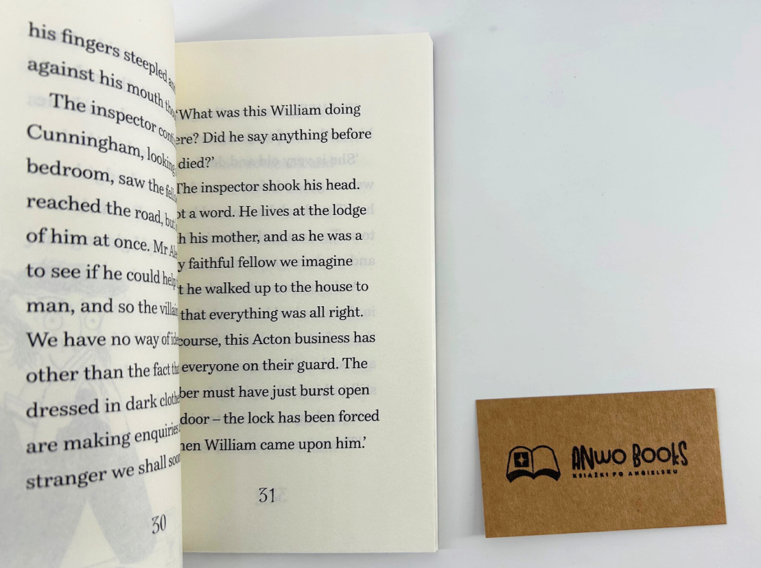 - Przystępny tekst wspiera samodzielne czytanie po angielsku