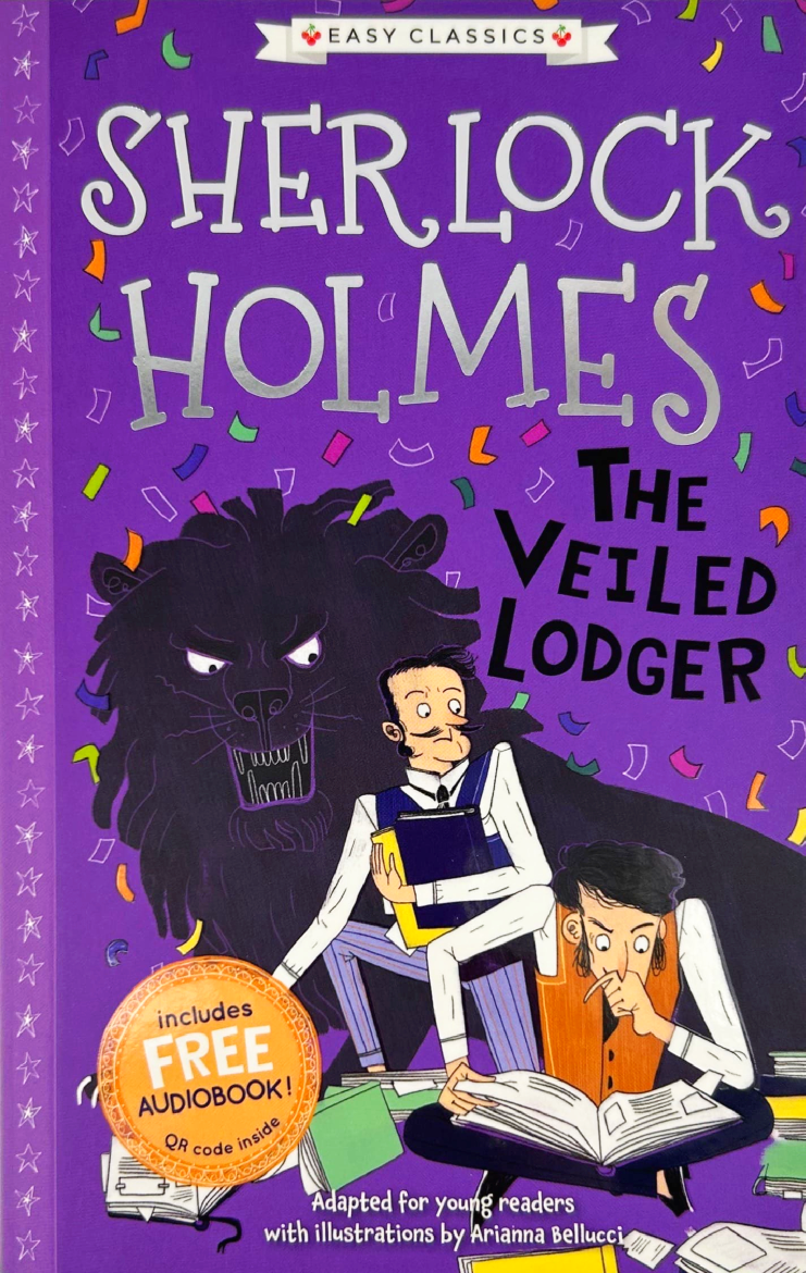 „Sherlock Holmes: The Veiled Lodger” to ilustrowana, uproszczona adaptacja klasycznej historii Arthura Conana Doyle’a, przygotowana dla dzieci, które lubią tajemnice, sekrety i bardziej mroczne zagadki detektywistyczne.