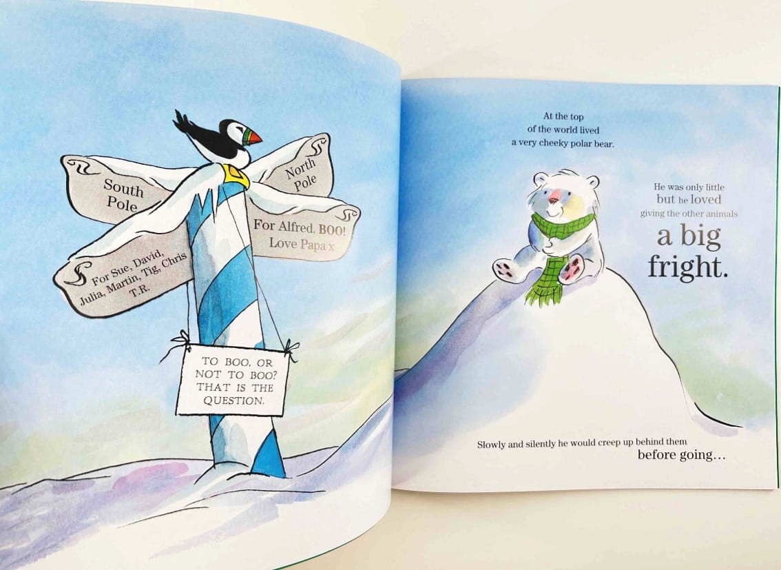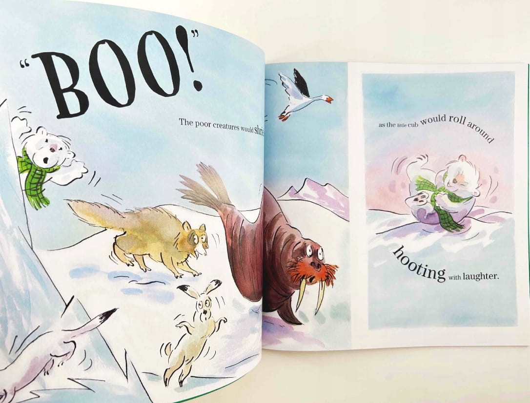 Na samym końcu świata, pośród śniegu i lodu, mieszka niezwykle psotny mały niedźwiadek polarny. Uwielbia robić wszystkim „BOO!” i wywoływać śmiech… problem w tym, że nie zawsze wie, kiedy przestać. Czy nauczy się, że nawet najlepszy żart potrzebuje odpowiedniego momentu?