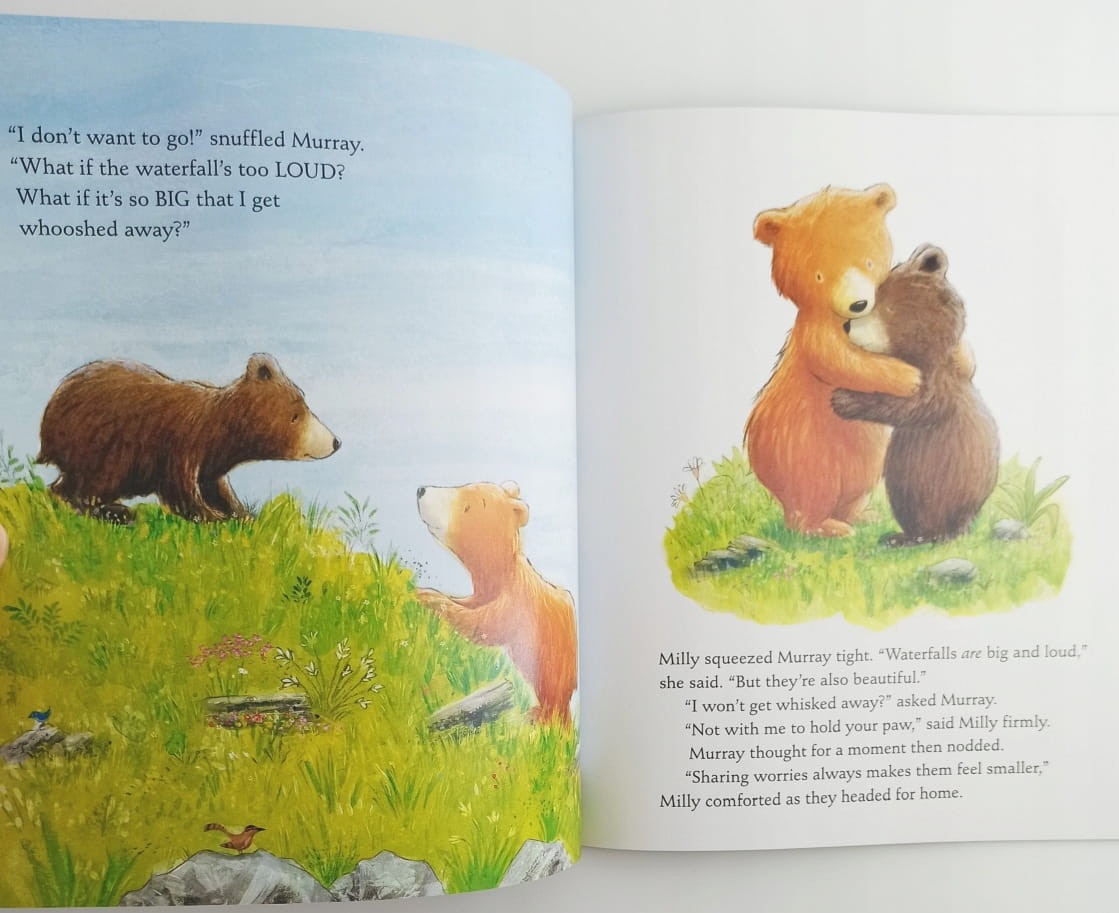 Murray Bear zmaga się z licznymi obawami – od hałasu wodospadu po strach przed wspinaczką czy reakcjami przyjaciół. Jego siostra Milly pomaga mu stworzyć specjalne pudełko na zmartwienia, które może okazać się kluczem do spokoju.