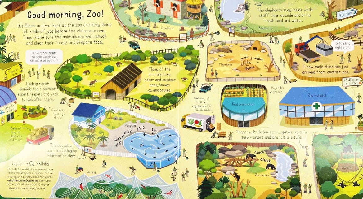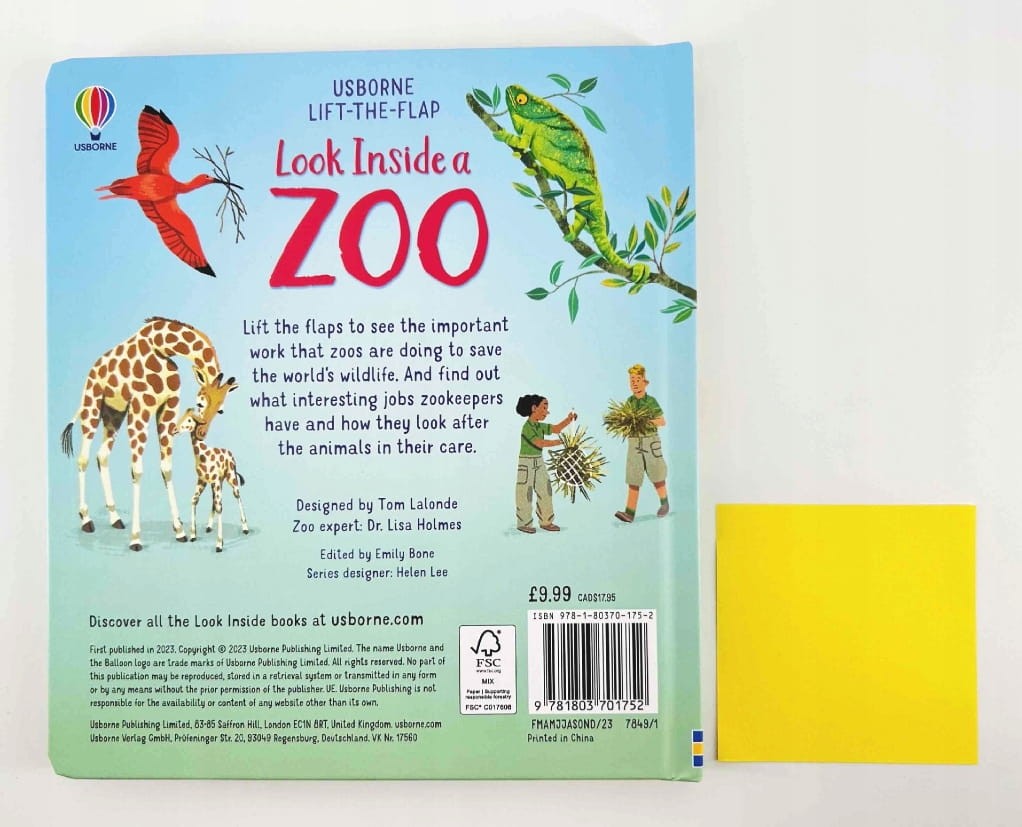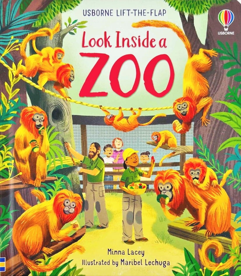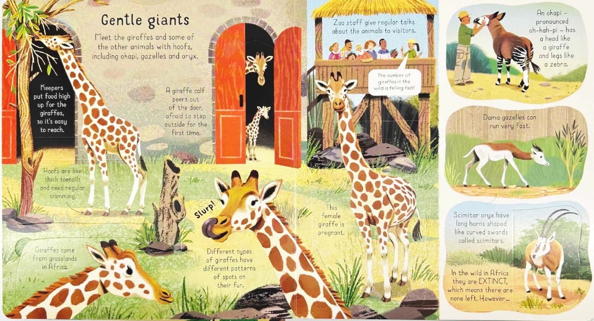 Usborne Look Inside a Zoo - książka po angielsku z okienkami o życiu w zoo