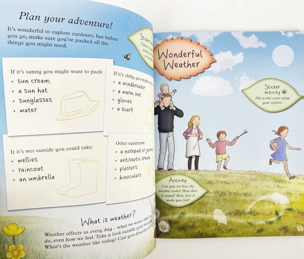 Dzieci dowiedzą się, jak zmienia się pogoda, co warto obserwować w każdej porze roku i jak cieszyć się przyrodą przez cały rok. W środku znajdziesz mnóstwo ciekawostek, pomysły na sezonowe przepisy, prace plastyczne i zadania z naklejkami.