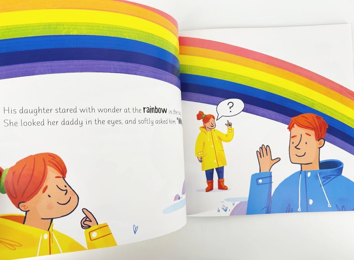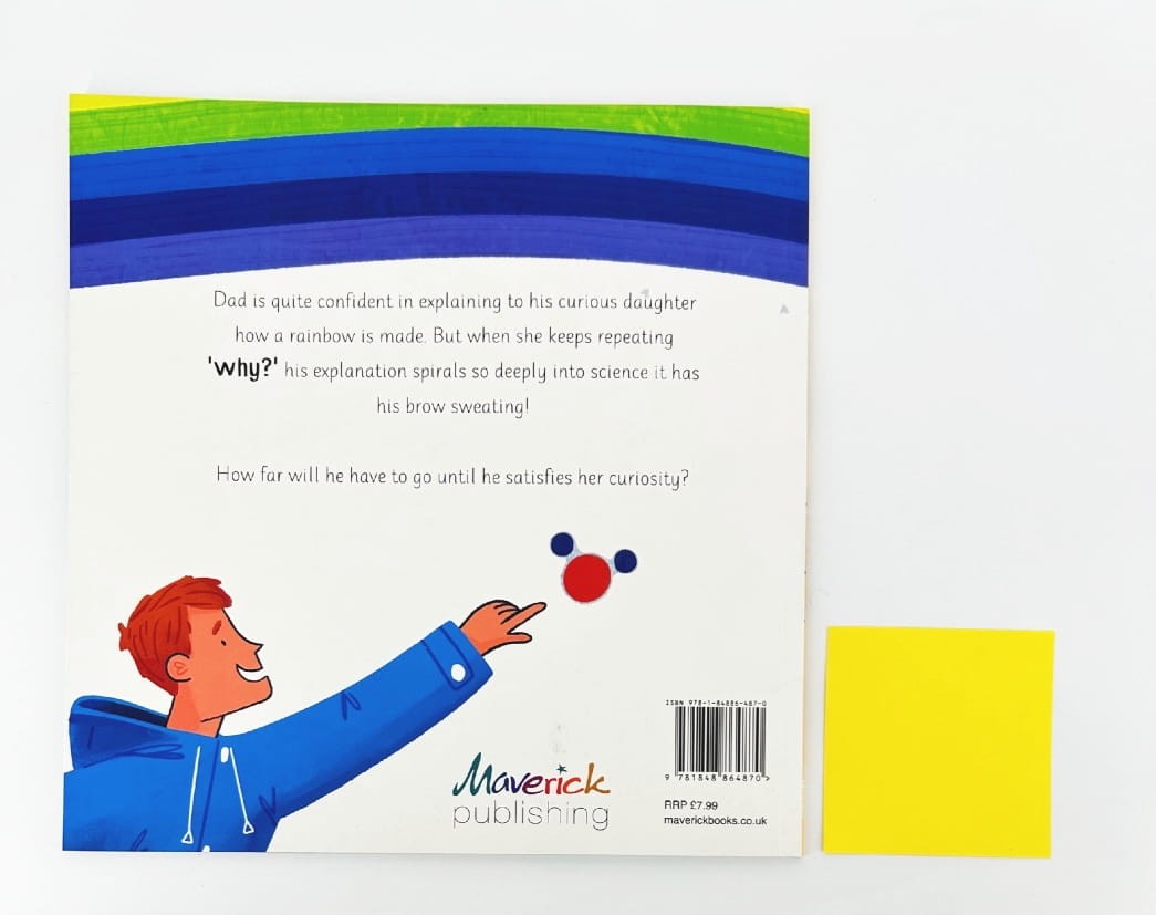 Tata z zapałem tłumaczy swojej ciekawej świata córce, jak powstaje tęcza. Ale kiedy dziewczynka ciągle pyta "dlaczego?", tata zaczyna wchodzić coraz głębiej w naukowe szczegóły… i jego czoło robi się coraz bardziej spocone!